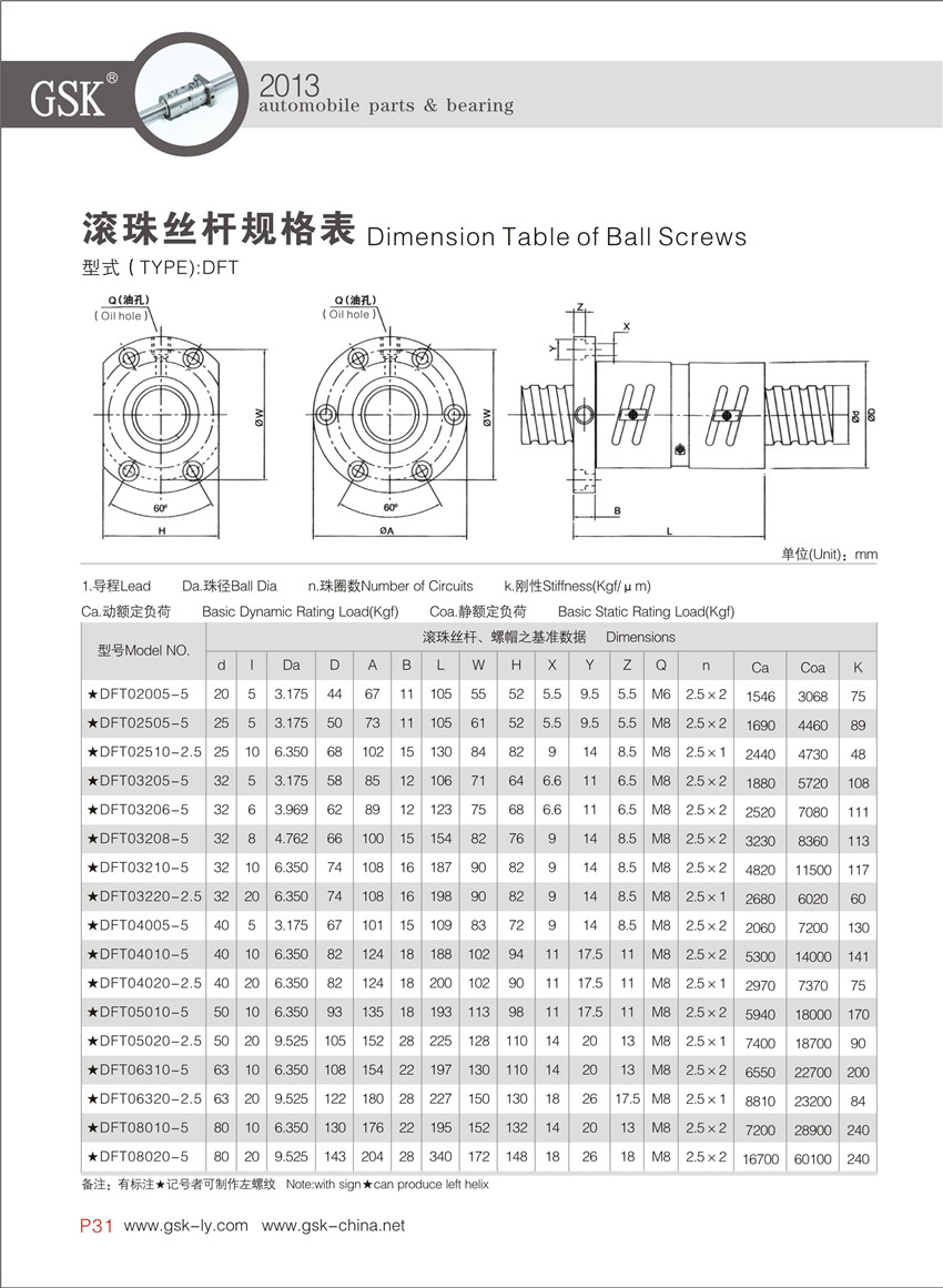 DFT螺帽型滾珠絲桿