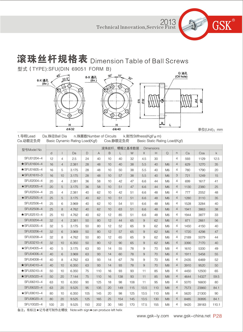 SFU螺帽型滾珠絲桿